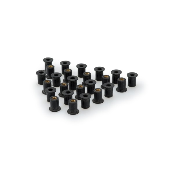 Con el paso del tiempo y de los kilómetros, los silentblocks de origen pierden su elasticidad y su capacidad de amortiguar las vibraciones, lo que provoca una notable reducción del confort de marcha y la aparición de ruidos molestos. Con los silenblocks de nuestro catálogo, se solucionan por completo estos problemas y se recupera la finura de funcionamiento de la moto. Son universales, con múltiples aplicaciones, y están disponibles sin tornillo y con tornillo, en varias medidas.