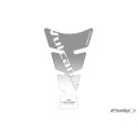Protector de depósito con una forma standard pero con la particularidad que lleva impreso el modelo de motocicleta en la parte central ya sea de color negro o plata dependiendo del color de protector de depósito.