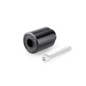 Mecanizados a partir de un bloque de aluminio Ergal 7075 de altas prestaciones y anodizados en color negro. Substituye el contrapeso original del lado izquierdo de la motocicleta para conseguir una simetría perfecta en el caso de montar el protector de maneta de freno en el lado derecho.
