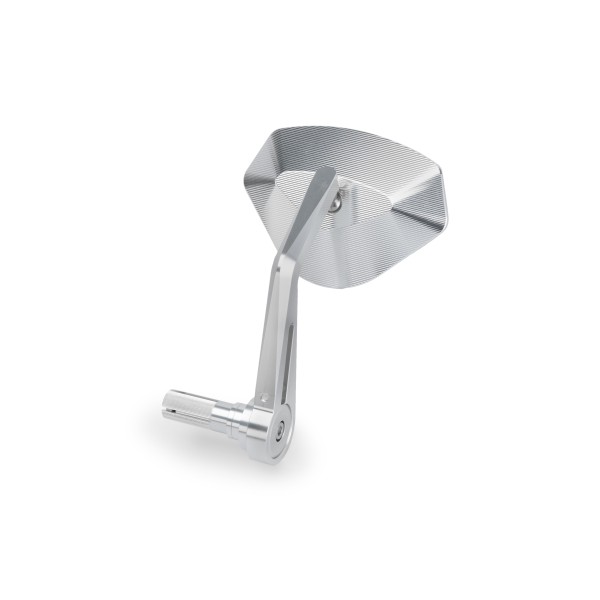 Retrovisor homologado de diseño compacto que se puede montar en la parte superior del manillar. La evolución del modelo Hi-Tech IV se ha desarrollado para conseguir un retrovisor homologable sin renunciar a un diseño compacto y deportivo. Se puede montar tanto en la parte superior como en la inferior del final del manillar, por lo que resulta ideal para pilotos de motos de estilo Cafe Racer o Nakeds que quieran conseguir una estética más personalizada y deportiva. Además de personalizar la estética de la moto también se consigue optimizar la visión ya que su espejo convexo proporciona una visión nítida en cualquier circunstancia. Tanto la carcasa del espejo como el soporte aligerado se han diseñado teniendo en cuenta la aerodinámica para poder ofrecer la menor resistencia al aire. Está fabricado a partir de un único bloque de aluminio de alta calidad, resultando una pieza ligera y resistente, con acabado anodizado en color negro o plata, para obtener un acabado perfecto y poder elegir el que mejor se adapte a la estética de tu moto. Se puede regular con la mano para facilitar el ajuste y reposicionamiento del retrovisor de forma fácil y rápida.