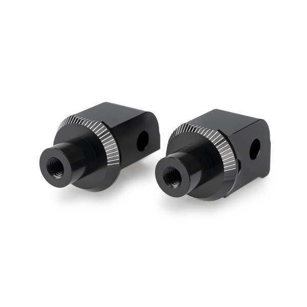 Son específicos para cada modelo, asegurando un ajuste perfecto, e incorporan marcas milimétricas que permiten regular la estribera con total precisión según las preferencias de cada motorista. Su construcción robusta, junto con un diseño compacto y un estilo claramente deportivo, los convierten en una opción ideal para los más exigentes.