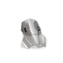 Se trata de una pieza fabricada en metacrilato de alto impacto, material que garantiza la integridad de la cúpula ante cualquier posible impacto y le permite mostrarse férrea ante las inclemencias meteorológicas, y tiene la particularidad de permitir regularse, para ofrecer la protección aerodinámica que demande cada situación y ruta.