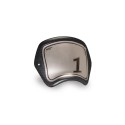 Pensada previamente como base para portar los números de las motocicletas de competición, Puig decidió diseñar una placa que mantuviera esa estética tan característica en las nuevas máquinas con imagen retro-vintage. Fabricada en ABS, material altamente resistente a los posibles impactos. La placa frontal está disponible en dos acabados, negro mate y símil carbono, y en dos formas diferentes, Simétrica y asimétrica.