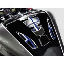 Protector de depósito de tres partes: parte central con el nombre de la marca de la motocicleta y dos pequeñas partes para poner al lado.