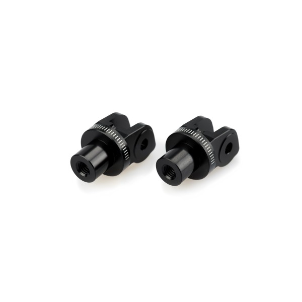 Son específicos para cada modelo, asegurando un ajuste perfecto, e incorporan marcas milimétricas que permiten regular la estribera con total precisión según las preferencias de cada motorista. Su construcción robusta, junto con un diseño compacto y un estilo claramente deportivo, los convierten en una opción ideal para los más exigentes.