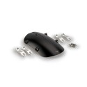 El anodizado final en dos colores, negro para el guardabarros y plata para los soportes, dan un toque de elegancia al conjunto. Mantiene los puntos de anclaje originales con lo que es fácilmente intercambiable por el original y se ajusta perfectamente a los puntos de sujeción del vehículo.