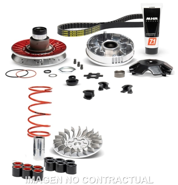 El fulcro del nuevo kit de transmisión es como siempre el variador Malossi Multivar, que está en constante evolución, está acompañado de dos series de rodillos para regular el funcionamiento de la transmisión según las exigencias propias.Dada la gran variedad de rodillos variador disponibles en el catálogo, las personalizaciones serán prácticamente infinitas.