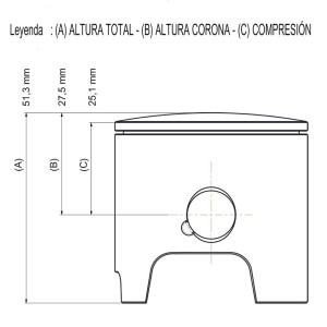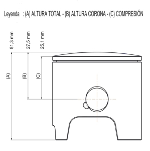 Pistón Ø 52 con bulón Ø 13 y 1 segmento rectangular selección AA