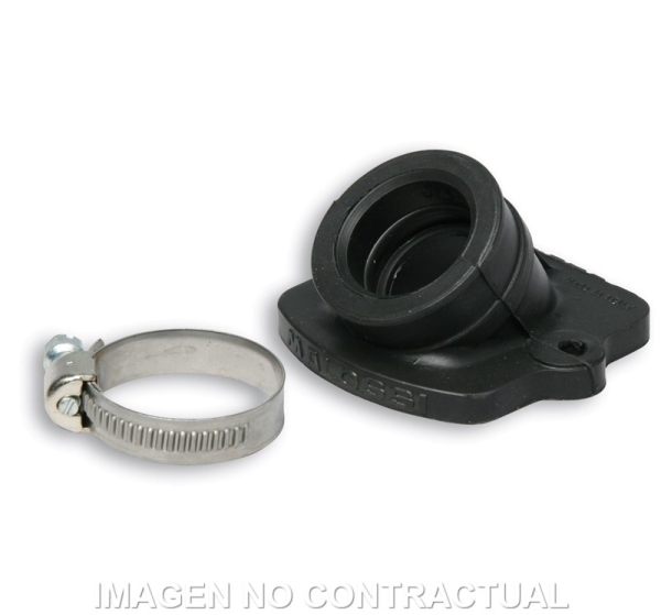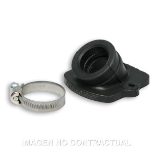 Los colectores de goma Malossi presentan una estructura compuesta porque se producen a partir de una pieza de aluminio que se engloba en un especial material plástico inatacable por los aceites y por las gasolinas, garantizando de esta manera una notable rigidez de la base de fijación con el cárter y una buena elasticidad del cuerpo del colector
