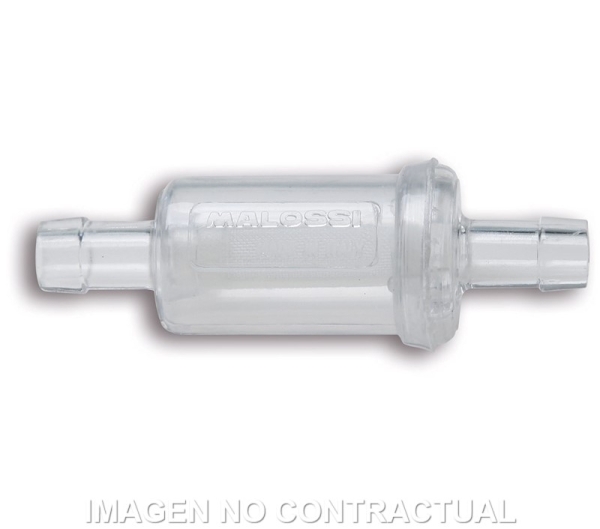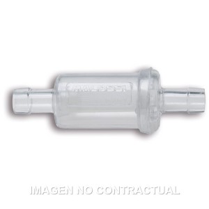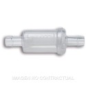 Filtro gasolina transparente de plástico resistente a los hidrocarburos con elemento filtrante de micro-malla de nailon.