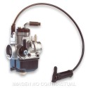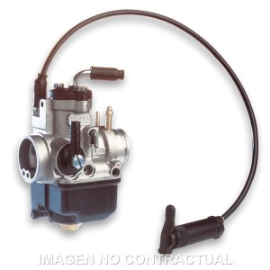 Carburador con fijación elástica (B) y tornillos de regulación a la derecha (D)