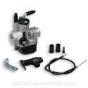 Carburador con fijación elástica (B) y tornillos de regulación a la derecha (D)