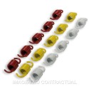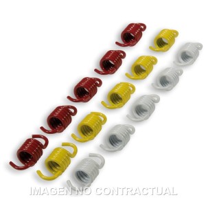 Resortes de acero al carbono pretemplado de elevada carga de deformación, protegidos por una pintura de distintos colores de alta resistencia térmica. La distinta coloración destaca la carga de cada serie de resortes