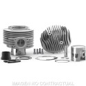 Realizado con aleación de aluminio de alta resistencia y tubo níquel-cromo. Compuesto por un núcleo central de espesor constante alrededor del tubo y de los trasvases, garantiza un intercambio térmico constante, por tanto, una temperatura de introducción de los gases en la cámara controlada y un intercambio térmico óptimo en la descarga, tiene aletas de enfriamiento con perfilado aerodinámico alrededor del núcleo, concebidas para que el aire de enfriamiento pueda penetrar en ellas de la mejor forma posible. La mayor innovación es el trasvase, completamente revisado y actualizado con la introducción del CVF de acuerdo con las últimas actualizaciones obtenidas gracias a la experiencia madurada en las competiciones. Los trasvases se han puesto a 7, un rasgo distintivo de los kits Malossi, gracias al cual ha sido posible obtener las mejores prestaciones fluidodinámicas.