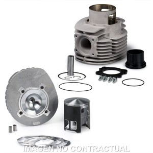 Cilindro en aluminio de diámetro 68,5 mm. , de 7 transfers, con culata , pistón de un segmento cromado y bulón de 16 mm.