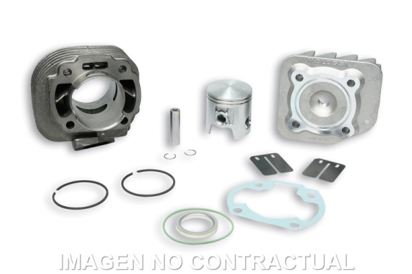 Cilindro en hierro de fundición, 6 transfer, culata de alta turbulencia y pistón con bulón 10mm de 2 segmentos de acero S10 de 1,5 mm de espesor.