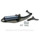 ESCAPE en chapa de acero especial (de un 1,5 mm de espesor); obtenido con procedimientos de moldeo. Con paredes internas silenciadas, abrazadera de soporte en acero con anclaje anti vibración. Barnizado a fuego con barnices transparentes.