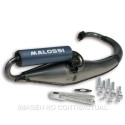 ESCAPE en chapa de acero especial (de un 1,5 mm de espesor); obtenido con procedimientos de moldeo. Con paredes internas silenciadas, abrazadera de soporte en aleación de aluminio con anclaje anti vibración. Barnizado a fuego con barnices transparentes.