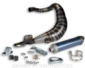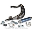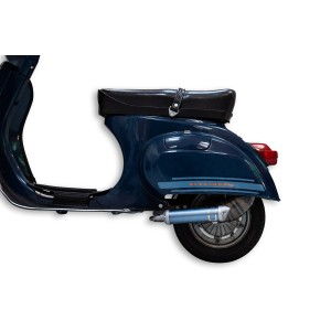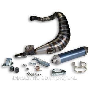 Es uno de los componentes esenciales para la elaboración del vehículo, estudiado justamente para dar al motor un óptimo incremento de potencia a los medios y altos regímenes. El nuevo escape MHR para Vespa ET3, estudiado especialmente para el acoplamiento con nuestro grupo térmico 3115829 permite el alcance de la más alta potencia a igualdad de régimen de rotación colocándose en la banda de escapes más rendidores en circulación. La grandísima ventaja de esta instalación de descarga está en el particular recorrido calculado y estudiado para permitir el montaje SIN TENER QUE CORTAR EL CHASIS: en cualquier configuración de funcionamiento y posición del cárter motor, este escape se coloca dentro del vehículo sin ningún punto de contacto nocivo tal de obligar al usuario a modificar el bastidor de su querida Vespa. El contra cono ha sido fraccionado aprovechando la experiencia madurada con el motor más rendidor nunca producido por Malossi: el RCOne 94cc; este ha permitido incrementar adicionalmente el campo de uso llegando a tener una ganancia prestacional incluso superior a 1 CV a los más altos regímenes de rotación cuando normalmente el motor pierde drásticamente prestación una vez superado el régimen de potencia máxima