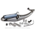 ESCAPE en chapa de acero especial (de un 1,5 mm de espesor); obtenido con procedimientos de moldeo. Con paredes internas silenciadas, abrazadera de soporte en aleación de aluminio con anclaje anti vibración. Barnizado a fuego con barnices transparentes.