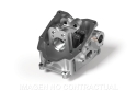 Culata en aleación primaria de aluminio fundida por gravedad en molde de arena, trabajada en centros de trabajo súper precisos dentro de tolerancias a la milésima.