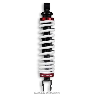 Amortiguador oleo-neumático con regulación en la pre carga del muelle, distancia entre tornillos aumentada en 35mm respecto al amortiguador original