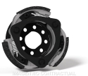 MAXI DELTA CLUCTH permite obtener de 3 a 9 regulaciones distintas, simplemente accionando tres tornillos de fijación, así como de 9 a 27 variaciones, cambiando los muelles y las masas adicionales de acero de calibración, según el tipo de scooter, produciendo otros tantos regímenes de revoluciones, en cuyo rango se determina el momento de entrada de la tracción, con el fin de optimizar la aceleración al arrancar.