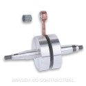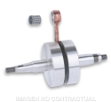 - Biela forjada en 18 Ni Cr Mo 5 con baño de cobre, acoplada al cigüeñal con jaula de agujas de precisión para alta velocidad