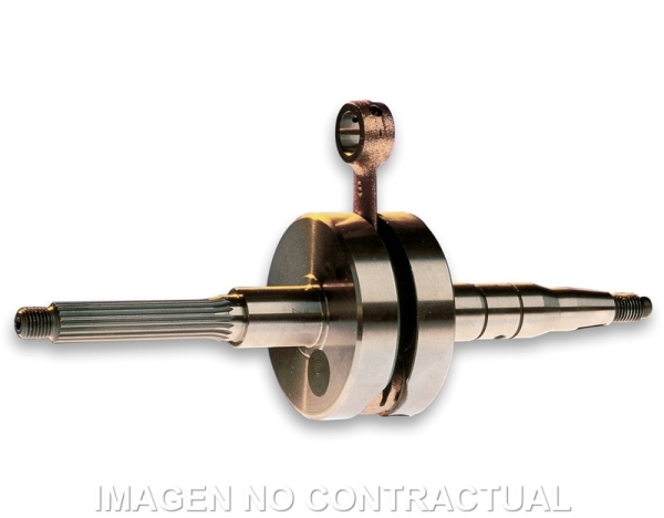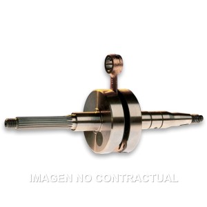 - Biela forjada en 18 Ni Cr Mo 5 con baño de cobre, acoplada al cigüeñal con jaula de agujas de precisión para alta velocidad
