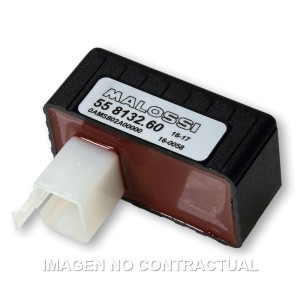 Las centralitas Malossi son de descarga capacitiva y por lo tanto permiten limitar al máximo la emisión de disturbios durante la descarga de tensión, proporcionan un pico de tensión en la bujía de encendido prácticamente perfecto (35.000-50.000 voltios en base al régimen de motor), además suministran tensiones de descarga y corriente de descarga muy elevadas y con una constancia sorprendente al variar el número de revoluciones del motor