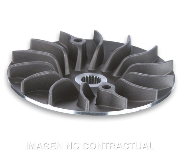 Estudiada para la línea de variadores de scooter, mejora las condiciones de trabajo de la correa de transmisión. No es un simple accesorio, si no una parte muy importante para la duración de todos los elementos de la transmisión.