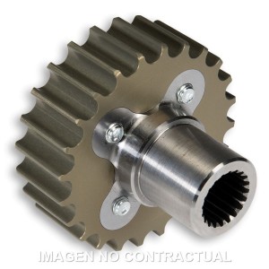 Piñones realizados en aluminio, con una oxidación dura profunda de 25 micron. Con este tratamiento Malossi ha mantenido una geometría especialmente ligera de la pieza garantizando una gran resistencia al desgaste. El buje central está fabricado con un acero aleado especial, sin tratamiento térmico para no aumentar demasiado la dureza y evitar que se creen problemas en el arrastre con el eje de transmisión del motor.