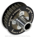 Piñones realizados en aluminio, con una oxidación dura profunda de 25 micron. Con este tratamiento Malossi ha mantenido una geometría especialmente ligera de la pieza garantizando una gran resistencia al desgaste. El buje central está fabricado con un acero aleado especial, sin tratamiento térmico para no aumentar demasiado la dureza y evitar que se creen problemas en el arrastre con el eje de transmisión del motor.