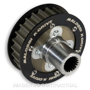 Piñones realizados en aluminio, con una oxidación dura profunda de 25 micron. Con este tratamiento Malossi ha mantenido una geometría especialmente ligera de la pieza garantizando una gran resistencia al desgaste. El buje central está fabricado con un acero aleado especial, sin tratamiento térmico para no aumentar demasiado la dureza y evitar que se creen problemas en el arrastre con el eje de transmisión del motor.