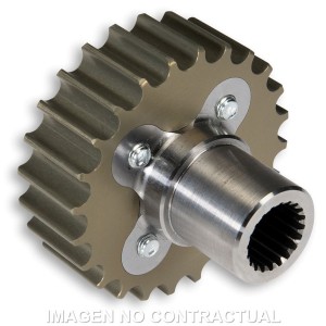 Piñones realizados en aluminio, con una oxidación dura profunda de 25 micron. Con este tratamiento Malossi ha mantenido una geometría especialmente ligera de la pieza garantizando una gran resistencia al desgaste. El buje central está fabricado con un acero aleado especial, sin tratamiento térmico para no aumentar demasiado la dureza y evitar que se creen problemas en el arrastre con el eje de transmisión del motor.
