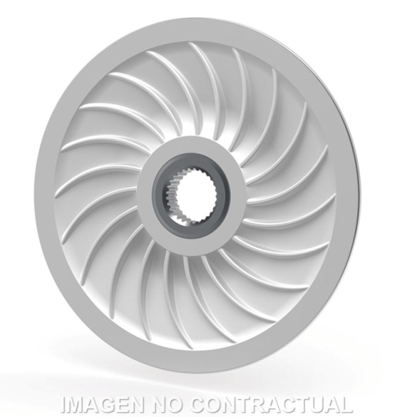 Estudiada para la línea de variadores de scooter, mejora las condiciones de trabajo de la correa de transmisión.