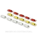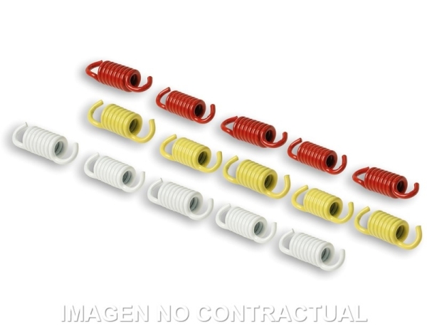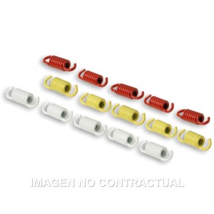 Resortes de acero al carbono pre-templado de elevada carga de deformación, protegidos por una pintura de distintos colores de alta resistencia térmica. La distinta coloración destaca la carga de cada serie de resortes.