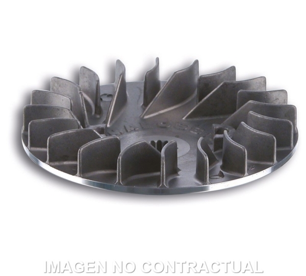 Es una semipolea fija trabajada con herramientas de diamante en la superficie de deslizamiento de la correa y con ángulo recalculado para incrementar el régimen de cambio. Este elemento completa el Multivar y lo convierte en imparable. Estudiada para la línea de variadores de scooter, mejora las condiciones de trabajo de la correa de transmisión