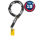 El 8077 yellow 12KS120 black loop pone muchos obstáculos a los ladrones: acero templado especial de hasta 13,5 mm (bulón). Una cadena para asegurar a objetos fijos. Un cilindro ABUS XPlus a prueba de manipulación. Y una unidad de alarma que avisa de los intentos de ataque a su motocicleta con una estridente señal de advertencia que puede oírse a larga distancia.