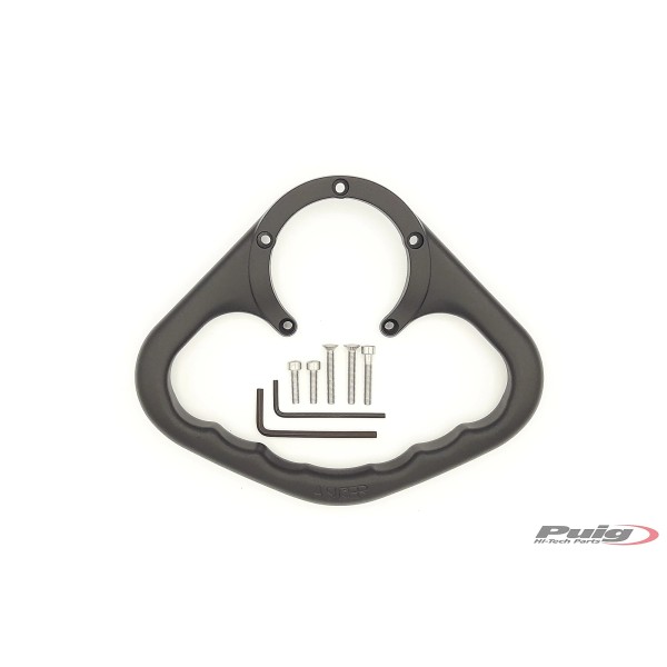 Fabricados en aluminio ligero y pintura EPOXI negra será el mejor complemento para mejorar el viaje del pasajero de tu moto, cuidando y conservando la estética de tu vehículo al máximo. Los asideros son fijados, mediante tornillos, al tapón del depósito de la moto.