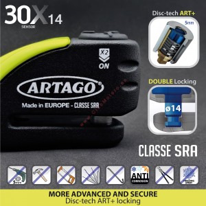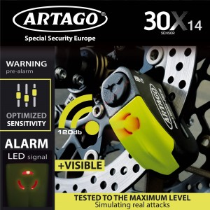 Pinza de disco Artago 30 X 14 con alarma de calidad y seguridad máxima.