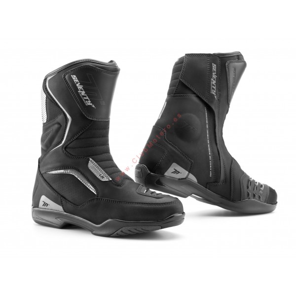Botas touring de caña media fabricadas en piel con acabado PU y Nylon. Incorporan membrana impermeable Wintertex y forro de malla suave de poliéster micro-transpirable. Para un mayor ajuste y confort cuentan con plantilla reemplazable, doble cierre mediante Velcro y cremallera así como cuello alto ergonómico. Integran inserciones reflectantes trasera y lateral para aumentar la visibilidad del motorista. Suela de caucho antideslizante con áreas específicas de agarre doble color y protector en el cambio de marcha. Refuerzo en espinilla, talón y dedo del pie junto con protección para el tobillo y puntos de flexión resistentes.