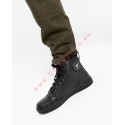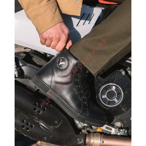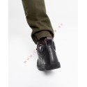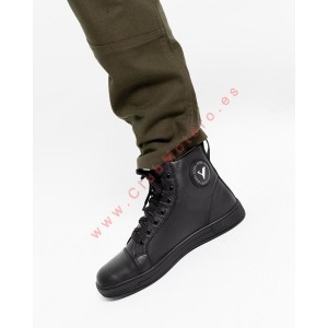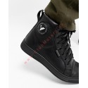 Calzado fabricado en piel de alta calidad con protección en puntera, tobillo y talón para seguridad añadida. Cierre con cordones para ajuste personalizado, forro interior de piel para confort, y diseño ventilado para mantener los pies frescos. Incluye elementos reflectantes para una mejor visibilidad en condiciones de poca luz. La suela de goma es flexible, resistente y proporciona excelente adherencia en diversas superficies.