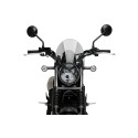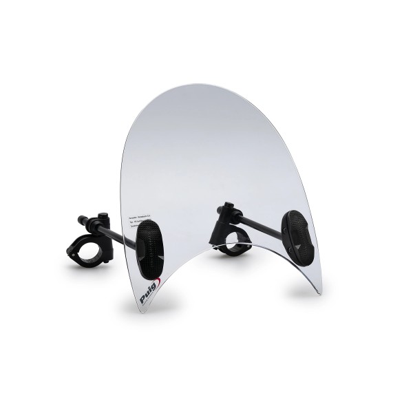 Incorpora varillas para regular la proximidad de la pantalla al manillar, faro o piloto, y rotulas integradas en las varillas que permiten regular la inclinación de la pantalla al gusto de cada piloto. Sus medidas totales son de 250mm de ancho por 270mm de alto.
