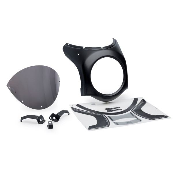 La pieza se compone de una carcása opaca, con acabado negro mate o símil carbono, y una cúpula ahumada clara, oscura, negra o transparente.