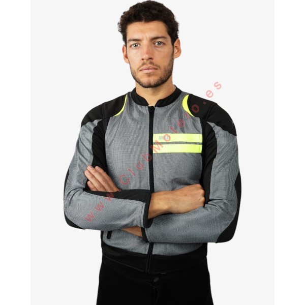 Chaqueta de moto para hombre fabricada en malla y punto elástico resistente a la abrasión, ofreciendo comodidad y flexibilidad excepcionales. Incluye dos bolsillos exteriores y enganches en el pecho. Ajustable en muñeca para un ajuste perfecto. Totalmente ventilada y ligera, ideal para condiciones climáticas cálidas. Detalles reflectantes en la parte frontal y trasera para una mayor visibilidad. Bolsillos interiores diseñados para protecciones (protección de espalda no incluida).