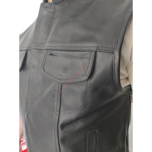 Descubre el elegante y resistente "Chaleco Custom Pure Leather", diseñado especialmente para quienes valoran la simplicidad y la calidad premium. Confeccionado en auténtica piel de vaca de alta durabilidad, este chaleco de diseño liso ofrece un estilo versátil y sofisticado. Incluye prácticos bolsillos interiores, un funcional bolsillo para espaldera (espaldera no incluida) y cremalleras laterales ajustables para garantizar comodidad y adaptabilidad. Además, te ofrecemos la posibilidad de personalizarlo con tus parches favoritos, gracias a un cosido especializado. Pregunta ahora por el cosido de parches y dale un toque único a tu chaleco.