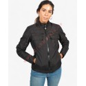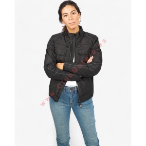 La chaqueta de moto Newport para mujer, confeccionada en resistente taslan y diseñada con tejido repelente al agua, ofrece la combinación perfecta de seguridad, confort y funcionalidad. Equipada con cuatro bolsillos exteriores y dos interiores, proporciona amplio almacenamiento práctico para tus pertenencias esenciales. Sus cremalleras impermeables YKK® y el sistema de ventilación frontal y trasero aseguran una experiencia fresca y cómoda incluso en trayectos largos. Con ajustes en brazos, puños y laterales, garantiza una ergonomía personalizada y un ajuste perfecto. Los detalles reflectantes y los acolchados en hombros y codos mejoran la visibilidad y la protección, ofreciendo una mayor seguridad en ruta. Una chaqueta versátil y confiable para motoristas que valoran calidad y estilo.