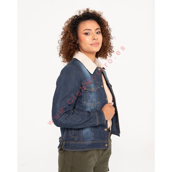 Descubre la cazadora de moto para mujer The Cadillac Lady, confeccionada en resistente tejido denim de algodón, ideal para combinar estilo y seguridad en la carretera. Esta prenda ofrece comodidad excepcional y está diseñada para protegerte durante tus viajes. Con ajustes personalizados en muñeca y cintura, se adapta perfectamente a cualquier silueta. Equipada con protecciones desmontables, brinda una seguridad adicional sin renunciar al estilo. Disponible en un elegante color azul, es la elección perfecta para motoristas que buscan destacar con equipamiento funcional y atractivo. Renueva tu look y mantente protegida en cada trayecto con The Cadillac Lady.