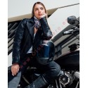 Cazadora de moto para mujer en piel de alta calidad, diseñada para combinar estilo, confort y protección en cada ruta. Este modelo es transpirable y repelente al agua, ideal para todo tipo de condiciones climáticas. Equipado con 3 bolsillos exteriores y 2 interiores, proporciona la practicidad que necesitas en tus aventuras en moto. Ajustable en cintura y cuello, esta cazadora garantiza un ajuste perfecto. Incluye cremallera YKK® con doble cursor para mayor durabilidad, membrana interna HIPORA® impermeable para protección contra la lluvia y cierre magnético en la cintura para mayor seguridad y comodidad. Además, cuenta con bolsillo interior para protección de espalda (protección no incluida) y está preparada para un forro interior desmontable 2 en 1 (no incluido), adaptándose a tus necesidades en cualquier estación del año. Perfecta para motoristas que buscan calidad premium y diseño funcional